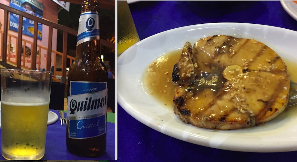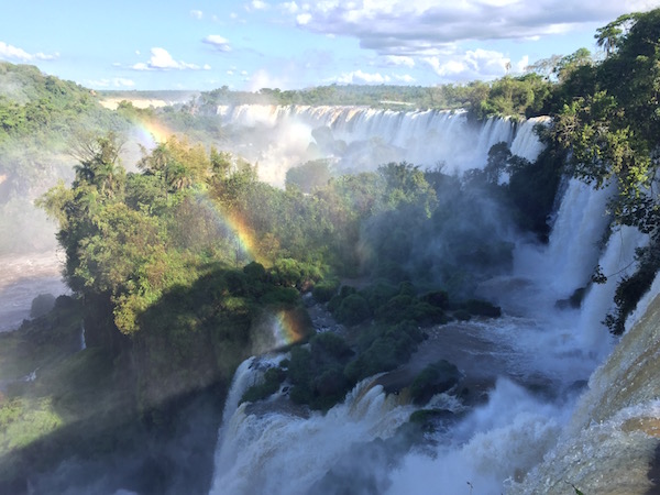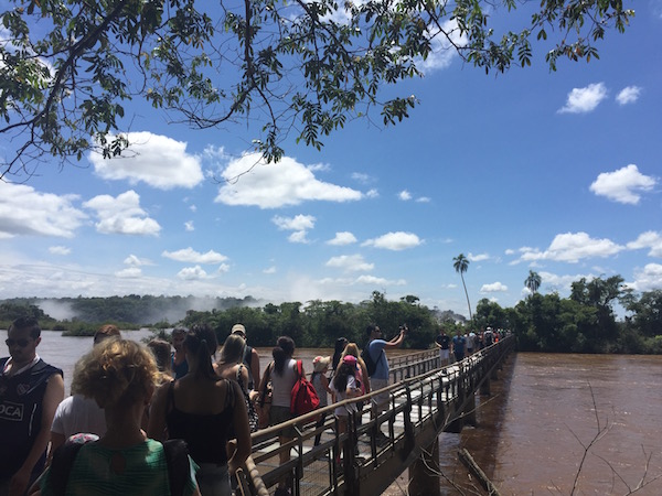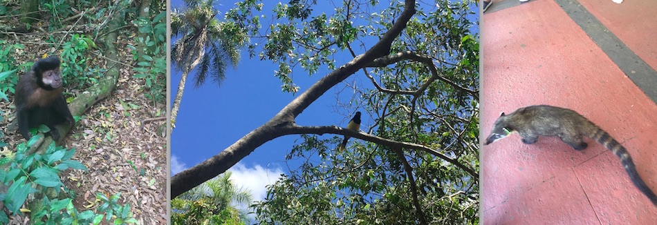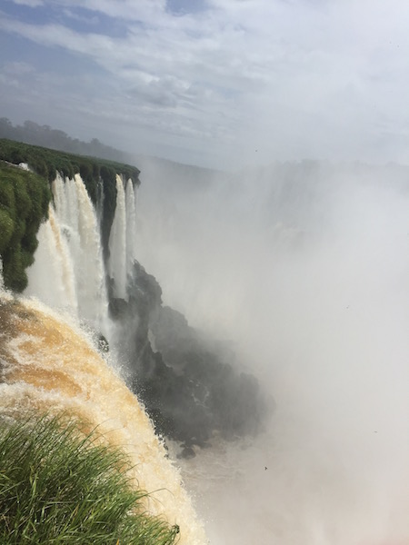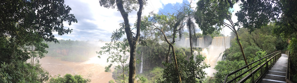 南米旅行 2016/10/14 夢のスタート的南米旅行:6.圧倒のイグアス編。 この日のテーマソング オフコース"言葉にできない"チリ国内線なのに、4時間の飛行時間だから機内食があるでしょ、とかなんか勝手に国際線のように勘違いしてお腹ペコりんなニイナです。当然ながらビールもないのでコーラでとりあえずお腹を満たしてみましたが、お腹はだまされてくれません。。。中学生の時の国語の教科書だったと思うのですが、村上龍の小説の一部の引用で、イグアスの滝の描写がありました。(パラグアイのオムライスっていう短編らしい。)それが、イグアスの滝の存在を知った最初だったと思います。ナイアガラに行った時にも、滝の威力に圧倒されましたが。あれだけのものをイグアスと比べて可哀想と表現した、なんとか大統領夫人の言葉の通りなのか、確かめる時がやっと来た、という感じです。さて、朝はたくさんの野鳥の声で起きました。まるでジャングルの中にいるみたい。普通に町中の(といってもプエルトイグアスの町自体小さいけども)ホテルなんですが。とりあえず、ブラジルに入国するとしたら、金曜なのでビザを取るラストチャンスだからどうすっぺかな、と思いつつやはり優柔不断な私、、、。決め切らないままホテルでのんびりとネットをしたりしつつ。それと前夜だったかな。満月の前後5日ずつのみ開催される、イグアスの滝国立公園が主催する人数制限付きの満月ツアーに申し込んでおいたのですが回答が無いし、、、。もう考えるのが面倒になって、そのままとりあえずバスでイグアスの滝に向かいました。(この時点でブラジル入国、ブラジルからの飛行機を使っての移動という選択肢を捨てたことになります。)アルゼンチン側のイグアスの滝国立公園の入場料はアルゼンチン国民が一番安く、次に隣接する南米の国々の人、遠く離れた日本国民は一番高い330ペソを払わされます。。。因みに16−17年版の地球の歩き方、の調査の時点からインフレが進んでいて料金改定の可能性があるとはいえ、本に記載の金額はおそらく隣接の国の人料金じゃないかなぁ、、、。他の施設の記載でも同じようなことがあったので。広い所を旅行する場合、とりあえず歩き方は用意するのですが、どんな所があるか、という程度にしか見ていません。街中の地図も違うこと多いしね。(ディスってる割にお世話にはなってるんですよ。。。)で、中のインフォメーションで、満月ツアーの申し込みの結果を確認したら、取れているから安心して、とのことでした。よっしゃ。そのまま園内の列車に乗って、一番の見所の「悪魔の喉笛」を見に行きます。列車にはたくさんの種類の蝶々がついてきます。写真にはうまく撮れませんでしたが、群れとも言えるようなたくさんのちょうちょがいる一帯などもあります。 ちょうちょは人懐っこい。。。列車の駅や遊歩道にはたくさんの鳥、ハナグマやサルがいます。 ハナグマは人懐っこいというより、常に食べ物に近寄ってくるので、地面に置いた荷物にも要注意。遊歩道を歩いて、滝に近づきます。 流れ込む、ジャングルを通ってきた川は赤く濁ってます。 ただただ圧倒。水煙が冷たく、ミストを身体に直に感じることで、ああここに居るんだ、と体感させます。 あとはとにかくひたすら、1日じゅう園内を歩き回ったり。 虹が幾つも現れては消えていき、また気がつけば出来ていて。滝壺に突っ込むボートツアーに参加したり。 ちなみにこれは上も下も半端ない水量がボートに入ってくるのでカッパ位じゃダメです。水着必須です。国立公園自体は18時で閉まるのですが、満月ツアーの予約が取れていたので、そのまま居残ります。園内のレストランは開いていないので、ツアー開始まで園内の入り口近くのスタンドなどでスナック買ったりしつつ、待つことになります。コーヒーショップも開いているけど、スタンドでエンパナーダとビールで待つ私。。。 夜のツアーは、ツアーといっても特に何か説明などがあるわけではありません。フラッシュを使った写真撮影も禁止です。ただ、月の明かりだけを頼りにひたすら夜のジャングルと滝の気配を感じながら悪魔の喉笛スポットを勝手にうろちょろするのみです。 でもそれだけで静かな夜の中に鳥の声と、虫の声を堪能できます。悪魔の喉笛では、昼間と同じく水煙の冷たさを感じます。夜の方が広く深く見えない分、畏怖は感じないのかもしれません。ツアーは終了時にレストランの入り口で飲み物(ワインもあります)を振舞われて解散です。ここで、晩御飯付きツアーを申し込んでいた人は、そのままレストランに案内されます。私は、晩御飯なしで申し込んでいたので、入り口に急ぎ、バスで町に帰りました。ホテル近くのガラガラのレストランで、(でも私の美味しいものセンサーがビンビンに反応している)サラダとパスタをお持ち帰りにしてもらいました。 待ってる間にビール。三日後にはマチュピチュで友人と落ち