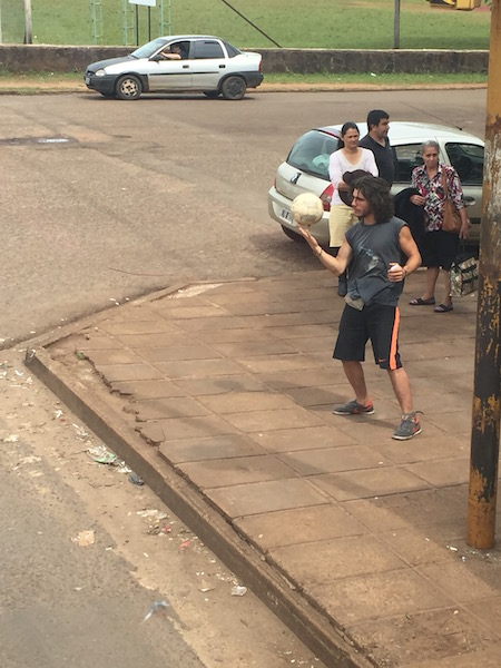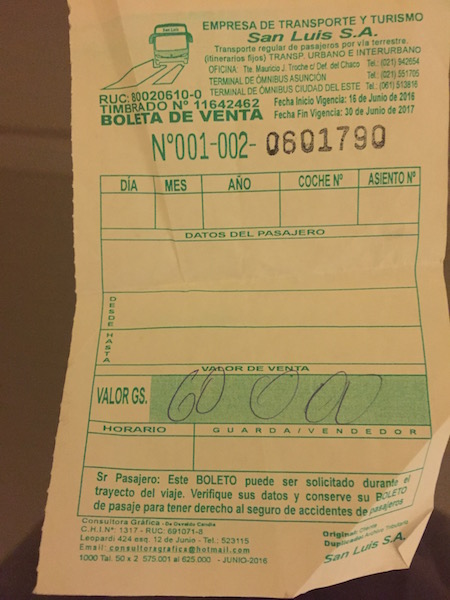 南米旅行 2016/10/17 夢のスタート的南米旅行:7.見過ごせないパラグアイ編。 パタゴニアのどこまでも広い地平線の中を走りながら、書いていますニイナです。普段、日本以外でバスの中でパソコン作業をすることはありません。街中を走っているバスとかだと、襲われたら一発で終わりなので。。。が、こんな何もないところ、バスが襲われることも無いのでしょう。通路を挟んだ隣の席の人も、パソコンを広げています。因みに、アメリカや中米ではwifiのあるカフェでよくパソコン作業をするのですが、今回の旅、特にペルーヤチリなどでは絶対に外でパソコンを出していません。だって、、、カフェやバスセンター、空港とかで、パソコン広げている外国人が一人もいない。なので、今回は同じPC(Macbook Air 11インチ)を持ってる人に、私の可愛いマッキャーナちゃんを見せてふふ〜んと満足感に浸ることは皆無です。さて。今回も移動の忘備録です。とりあえずの移動ばっかりが多い、今回の旅。またしても、イグアスを見終わってバタンキューして起きたその三日後にはペルーのクスコで友達と待ち合わせってことで、とりあえず朝一番に、パラグアイに抜けるバスに乗るべく、朝6時半くらいにホテルを後にしました。何もチケット買ってないんですけど、パラグアイの首都、アスンシオンという所まで行けば、バスか飛行機かなんかあるでしょ、と思いまして。プエルト・イグアスの町からアルゼンチン側のイグアスの滝に行くバスを運行している、リオ・ウルグアイ社が、パラグアイのシウダー・デル・エステという街までのバスを運行しています。パラグアイに行くのにウルグアイ。。。ややこしや。国内同士で乗車時間も短いイグアスの滝までが片道65ペソに対して、パラグアイ行きは35ペソ。なんだか、外国に行くのかよくわからん感覚です。集めた情報によると、シウダー・デル・エステは秋葉原のような電気街らしく、アルゼンチンやブラジルからも多くの人が来るらしい。市場が発展するのはなんともザ・国境の街ですね。というわけで、バスは路面バスのように多くの地元ィが乗っています。バスは一度、ブラジルのフォス・ド・イグアスという街を通ってからパラグアイに入ります。なので、アルゼンチンからブラジルに抜けるときに、バスの中の人全員がアルゼンチンの出国と通関をします。そのまま、フォス・ド・イグアスの街を30分くらいで通り抜けて(降りられません)ブラジルからパラグアイへの入国となります。ここで地元ィの皆さんは、何もしなくていいらしいのですが、私はパラグアイの入国手続きをしなくてはなりません。なので、運転手さんにその旨伝えておき、国境で降ろしてもらいます。手続き30秒で終わったけどね!一人だから、運転手さん待っててもくれないし、でかなりの雨まで降ってきた〜(泣)国境を抜けた先に通関があるらしいのですが、誰にどう尋ねてもどうやらそれはスルーしていいらしい。緩いな。で、ふっかけたタクシーなんかにイライラしながらも、バスターミナルまでアルゼンチンペソで行ってもらう。(実際に乗ったときのアルゼンチンペソがいくらか忘れましたが、最初の数人のタクシー運転手はみんな10000グアラニーで言ってきたので、暗黙のルールがあるみたいです)バスセンターではアスンシオン行きのバスがいつでもたくさんあるみたいで呼び込み合戦もすごい。ここでは両替屋さんのカウンターがあるわけではなく、カバンを持った両替おじさんに頼んで両替します。パラグアイは通貨の予定なので、米ドルからとりあえず40ドル分ほどをパラグアイの通貨のグアラニーに両替しました。さて、すぐに出る60000グアラニー(1000円ちょっと)のサン・ルイス社のに飛び乗って、と。 日本人居留地などを通り過ぎつつ、のんびり道を5、6時間走ります。道はひたすらまっすぐです。 空港に行ったら、何かチケット見つけられるかも〜、と思ってバスの運転手さんに空港に近いところで降ろしてもらうように頼みます。アスンシオンの空港は、アスンシオン市内ではなく隣の(通り道の)ルケ市にあるらしいのでね。降ろされたところから、周りの人に尋ねて2番という路面バスに乗ってひたすら1時間くらい、で空港に到着しました。が、ここで、、、。リマにその日に向かういい感じのチケットはネットでは見つからず。LANTAMエアはばか高いし、日によってはアビアンカ航空でいくつか便がありそうですが。。。なのでアビアンカ航空のカウンターで尋ねようとするもアビアンカはアスンシオンの空港にカウンターを持っていないので、深夜便が出ることにならないと、人が来ない、、、。と、いうわけでその時に確実に買えてしかも安い(と言っても当初考えていたより全然高い/泣)チケットは二日後の早朝のみ、だったのでそれをネットで押さえて、二泊分の宿を探しに、アスンシオンに30番の青いバスで向かいました。バスの運転手さんに、とりあえず地球の歩き方に載