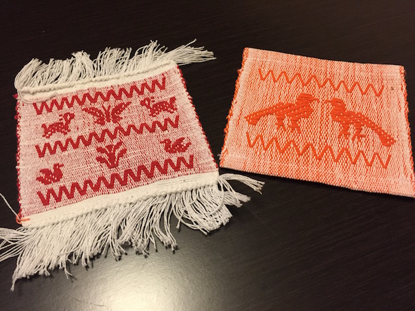 これは一人で行った、近所の旅行会社のオフィスで日本人の業者さんが開催していた展示即売会でゲットん。メキシコの中でも有名なオアハカの織物(刺繍)のコースターです。