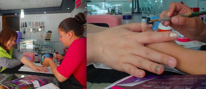 メキシコの生活いろいろ 2015/06/28 正しい休日の過ごし方:サカテカス編 会社が一週間の休みに入って心も身体もリラックス、ついでに久々の旅気分も沸々しているニイナです。 が、未だ海にも山にも行ってません。。。 休み前は職場以外で人と話す機会が多くあり、バタバタと忙しくしていました。 先日カウチサーフィンのサイトで公開した我が家が思いもかけず、多くの反響を頂いておりまして。 その対応などを忙しくも楽しくさせていただいていたところに、ケツァルテナンゴで同じ家にホームステイしていたゆきちゃん(本名・関西人)が「明日行ってもいいですか」ときた。 南米で起業すべくいろんな場所をぐるりと見て回ってきた彼女が一度日本に戻る前に、私の休暇に合わせて一緒に旅行にすべく寄ってくれたのです。 家で一緒にご飯を作って食べる人が居る幸せ。。。 ですが未だ行き先もまだはっきり決まってないw 観光は、、、しないだろうなぁ。 とりあえず昨日は彼女の将来起業したい分野のメキシコバージョンを見に行ってみよう、ということでネイルサロンに行ってきました。 そういやネイルのお店情報などを同僚のメキシコ人女子から聞き出していると、自然と女子トークが始まるのですが。 こっちの女子は体重をオープンにするのが普通っぽい。 しまいには男子も一緒にみんなで体重計りに行っている(就業時間中なんですけど。) まぁ、太目女子が多いのでどうってこと無いのでしょうが、まだまだそこの文化には飛び込めてないシャイガールな私です。。。 さて。ネイルは私が一時帰国の際に成田で施術してもらった日本の繊細なデザイン(と言ってもただの単色グラデーション)が現地女子の間で大絶賛だったのですが、残念ながら塗り替えんとね。 結局そんじょそこらで見つけたすぐに入れるお店に決定。 ネイル雑誌やサンプルが多いのですが、スカルプ(付け爪)じゃないと出来ない、と言われて出来ないデザインも多く、私のいつも短くする爪にも出来る、と言うので選んだのがコレ。 元の日本からのネイルをオフするのは日本と同じ道具と手順です。 が、そこからが、、、。 ジェルというよりアクリル工芸と言ったらいいでしょうか。 ライトを当てるのは最後だけで、途中は勝手に固まるアクリル(?)を盛ってベースを作っていました。 そりゃあ薄く塗り重ねで作るグラデは無理でしょう。 結構体勢に無理有り(笑) ラメが厚いアクリル層の中に閉じ込められてます。 そしてデザインも、、、。 そもそも日本みたいに基本のメニューやサンプルから色を変えてストーンはこう配置して、、、とネイリストさんと一緒にオリジナルを作っていくのは難しいだろうと予想はしていましたが。 (普段、仕事でメキシコ人と接していても、発想力や創造力といった面には乏しいタイプが多いと思う) なんでコレ出来るって言った?というくらい違うので、もはや諦めを通り越して微笑ましい(笑) 絵を描いてこんな曲線を書いてって説明しながら、出来上がったのがコレ。 何か違うし、はみ出しや引っかかりなどの弊害も多々ありますが、なんとか終了。 オフまで入れて全てで180ペソくらい(チップ含め200渡し)、1時間半くらいだったかな? (ゆきちゃんがメキシコシティでしたデザイン無しのジェルはアクリル工芸じゃなくて100ペソ) ゆきちゃんには早いところ日本クオリティのネイルサロンを広めていただきたいところです。 夕方からは同僚のメキシコ人の結婚式に参加すべくサカテカスの観光名所であるブーファの丘の上にある教会に行きました。 初めて海外で結婚式に参列です。 花婿さんが付き添いの家族と一緒に入るのに続いて花嫁さん、と参列者も入ります。 聞いていた時間より30分後れで始まった式の間は、ほぼほぼ神父さんのお話で儀式も沢山あり、厳かというよりは始業式の校長先生のお話状態でした。 儀式の間の時々起こる「間」で入る生演奏がメキシコっぽい音調です。 1時間ほどで式は終わって、披露宴会場へ。 披露宴も席が沢山あって誰でもどこにでも座れます。 お祝いのお包みはどうしよう、、、と考えていたのですが、こちらはお金ではなく新生活で使えそうな家庭用品を披露宴会場で本人達に直接プレゼントするのが一般的、とのこと。 (披露宴の途中でもらったものを披露するのでプレゼントを置く専用の台が設置されていました) というわけで私はプレゼントをお式に行く前に街中のギフトショップで準備したのですが、「結婚式のプレゼントなのでラッピングして」と言ったら日本ではしないタイプのラッピングをしてくれました。 土台に結婚おめでとうのリボンを付けてopp紙をドライヤーでぺたっとしています。 お金も贈れるのですが、新郎か新婦とダンスする時に新郎のスーツの上着の襟周りや新婦のウェディングドレスにピンか何かでお札を付けていました。 20ペソから500ペソまでいろいろありました。(これ日本だったら一番最初に付いた金額と同じ額ばかり付いて