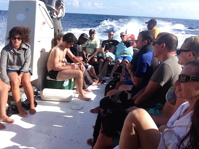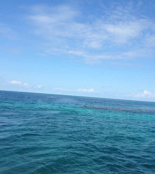 ベリーズ 2014/11/12 ベリーズ逃避行:青穴編 久々に世界遺産に行くぞ!と思って行ったニイナです。 ここ数年、行きたい所にあるならついでに見に行っとくか、のスタンスだったのですが、先日の海の中初体験でブルーホールはやっぱり中から見よう!と最終的に決断しました。 ちなみにブルーホールは世界遺産と言っても旅行好きではない方からしたら「ベリーズ?どこそれ?」と言われる程度なので、ググった参考資料はこちら↓ 朝、5:30にホテルの部屋から歩いて2分のツアー会社オフィス兼出発場所へ。 朝ご飯にパイナップルと食パン食べながらコーヒーで目を覚まします。 6:00にサンペドロを出発し、6:30にはキーカーカーに着。そこで追加の人を積み込んで出発です。 追加の人を乗せる時に、前日にキーカーカーでツアーを申し込みかけた(けどキーカーカーのATMでなぜかお金が降ろせなかったので申し込みをキャンセルした)ツアー会社のおばちゃんが付き添いで来ていて、一応挨拶をしておきました。「何でか分からないけどサンペドロに行っちゃった!そこではお金が降ろせたからサンペドロでツアー申し込んだよ」と。 結局、同じ船に乗る事になるし、サンペドロの方がブルーホールまで遠いし費用もかかったのですが、まぁいいや。 だってあの時は何となく動きたい気分だったんだもんねー。 今日のメンバー ・ダイビング:12人(ヨーロッパ組・オージー・南米組と様々) ・シュノーケリング:4人 ・ガイド:ダイビングに2人・シュノーケリングに1人 ・船長さん の計20人で出発です。 代表ガイドさんが全体を上手く盛り上げようと、唯一の日本人の私がポツンとなりかけても話しかけてくれるし、シュノーケリング担当のガイドさん(おそらくガリフナ族出身)は無口ながらも常におやつのデザートが切れないように準備しているし、快適な船中です。 隣に座ったマダムがスペ語でガイドさんと話しているのを見つけ、すかさず話しかけアルゼンティーナのお友達も出来ました。ホッ。 他にも一人、誰とも喋らずいかつい侍タイプのいかにもダイバーで映画のグランブルーに出てきそうな白人のメンズがいましたが(ってかあれはタンク無しで潜る海を好きすぎる人達の話ですが)、後でスペ語で話しかけてみると、とっても可愛い声の話し好きなスペイン人でした。 「このTシャツは15年着てるよ!日本が大好きさ!」日本製じゃないと思うけど、長持ちしてますね(笑) 後で、セニョールと呼びかけたら「それは完璧だけど間違ってる!僕たちは友達なんだからダメ!」と言われました(笑) そもそも船中でも特にそうだったのですが、英語圏のベリーズで日本人の私がスペ語を話す事にとても驚かれます。 ふふ、英語を話せない分、スペ語の方が出てくるんだよー。 でも、これでスペ語が分かる人は喜んでスペ語で話してくれます。 私がわからないで、ん?となるとすかさず英語に切り替えてくれたり。 やっぱ英語必須ですね。ケツァルテナンゴに戻ったらルームメイト達にお願いして練習しよう。 ちなみにガイドさんが言うには、ベリーズも北(メキシコ側)に近いほどスペ語が通じるのだとか。 2時間ほどでブルーホールに到着です。 空から見るか、海の中に行くかで迷っていた時にネットで見ていた情報によると、 ・空から見る程くっきりと穴が分かる訳ではない ・潜っても水深が深すぎる為ダイバーも少しの時間しか潜れない上に、きれいにいろいろ見れる訳ではない(洞窟の中の様な光景だそうです) ・シュノーケリングだとなおさらがっかり、きれいな珊瑚礁を見るだけなら周辺の3カ所ツアーで充分 とマイナスイメージばかりです(笑) ただ、空からの画像は先日の佐賀男君が綺麗な画像をネットに上げていて、これはいつか空から本物を恋人かだんな様と共に見よう!と思った次第なのです。(懲りんな、私。。。) それにやっぱり行かないと分からない事もあります。 そう、私は人の顔色に怯える割には主体性を持ったタイプだと思うのです。(やりたいと思った事は後悔してでも一度やってみないと気が済まないタイプなだけなんですけど) で、ボートから見ても案の定、青い所と水色の所がそれぞれあることはわかるのですが、はっきり穴!とはわかりませんでした。 が、水の中をパシャパシャ行くと、ここから穴だー!!とわかります。と言うか体感します。 シュノーケリングはホールの縁の周辺を1/3周くらいした感覚なのですが、縁の周辺の珊瑚が見える浅い部分(と言っても水深は20mはあると思います)から離れて穴の上はきっと何も見えなくて楽しくないと思います。 本当に穴の所はぽっかりと急に深くなっていて、浅い所で見られる様な魚もほとんど見えないし、水深が急に変わるからか深く引き込まれる様な流れがあります。 私はビビりながらもその本当に境目のギリギリを泳ぎながら、海の不思議を楽しみました。 その日のシュノーケル隊の4人は私以外にはパナマから来たイスラエル人の女の子二人と、パリから来た韓