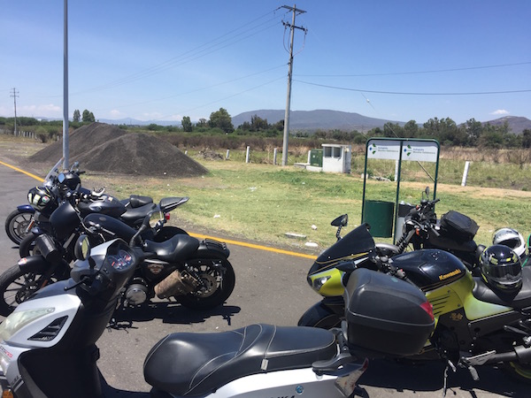 メキシコの生活いろいろ 2018/06/09 メキシコでバイクで爆走500キロ!ミチョアカンツーリングの巻。 この日のイメージソング スピッツバージョン ”さすらい”去る4月30日、メキシコでバイクの免許を「買い」ました。グアナファト州では3年で300いくらかペソ(うろ覚え。1800円もしないくらい)でした。メキシコは車の免許とさらにバイクの免許を持とうとすると別のカードになるので、2枚持ちです。 グアナファト州の免許証。車の免許は右下のアルファベットが「A」です。因みにグアナファト州では車は学科も実技も試験がないのですがバイクは取った人によっては試験を要求されただの、無いと見せかけて実は一本橋の実技試験があるんだよと脅されたり。。。(笑)結局は試験はなかったのですが、日本の免許の翻訳を(自分で)した書類を提出して日本でちゃんと16年以上バイクの免許を保持している(運転の経験がある)ということをスペイン語で証明する必要がありました。さて。免許を取ったのは他でもない、メキシコでバイクに乗る予定があるからで。去年の秋から仲良くさせてもらっている(その割にバイク持ってない私は準メンバー?!)バイクチームのツーリングに参加するためです。ついでに自分のバイクも買ってしまいたいのですがどうにも日本に比べて中古市場が高い。日本では10年以上前のバイクとか値段つくの?みたいな感じだったと思うのですが(昔の事情しか知らないんですが。)こっちで私が欲しいクラス(400cc前後)というバイクは少なく30年前くらいの車体が3万ペソ(17万円くらい)以上します。そんな古くていつどうなるかわからんの買うくらいなら外国メーカーの小さいのの新品買うか?!いやいやでもやっぱ遠くに行けるように大きなエンジン欲しいし日本のメーカーのエンジンがいいし、、、と迷いに迷って未だ買えていません。ついには前から買おうか悩んでいる自動車に振り切ろうとまでしている(笑)因みになんで中型が少ないかというと、外国メーカーで作っているところがないから。というか、各メーカーでそれぞれの大きさに特化しているというか。150cc前後を多く出しているITALIKAっていうメーカーの小さいバイクはよく見るけど大きいのはまず見ません。同様にハーレーは小さいバイクは作っていませんね。大きいのは私には持て余すし。けど日本で大型二輪免許を持っていないけどこっちなら大きさ関係なく乗れるってことで400〜650ccくらいのを探しているのですが、なかなか。そんなこんなでバイクを持っていない私は5月最後の週末に決まったツーリングには、バイクチームの隊長のちょいワルおやじさん(ハーレー乗り)所有の175ccのスクーターを借りることになりました。 ・・・私、日本でもスクーター運転したことないんですけど。車より先にバイクの免許を取ったため、本来ある原チャリ講習を受けてなくて。。。昔、ビッグスクーターが流行った頃に、友達(女子。私より後にバイクの免許とった)の後ろに乗った時は、怖すぎて泣き叫んだ記憶があります。だって、オートマやし、曲がり方も自分が乗る普通のバイクと違うし、、、。というわけで、ツーリングの一週間前のミーティング(という名の飲み会)で急遽、原チャリ講習。ってか175ccあれば原チャリじゃないんでしょうけど。とかいうツッコミはさておき、飲み会場所の住宅街の中で練習です。どうしてもメキシコ特有のボコボコ道の恐怖や停まれないんじゃないか感があって40キロ以上出せません。そんな中、左回り、右回りと何度も走らされる。うぅ、、バイクチームは体育会系のスパルタなのです。翌週の一週間はこりゃまた仕事でバタバタしていて。割り当てられた買出し品など準備していたらあっという間に出発の土曜日の朝となりました。またもあまり寝れてないけど大丈夫かしら。。。まず最初にいろんな荷物と共に、隊長とご近所さんの副隊長のおじさま(ハーレー乗り)の家に向かいます。今回、なんとこちらの副隊長のおじさまが会社で所有する大きな車をサポートカーとして出動してくださることになっているのです。それで皆さんの荷物を運んでくださるとのこと。私にも、原チャで疲れたらサポートカーに乗せていいからね、とな。神や・・・! 今回のツーリングの立役者、サポカー君です。ってかそもそもこちらで大型バイクを所有、運転出来るって皆様それぞれ会社で権限を持った立場の方々だからこそかと思います。(どこの会社の方か、とかあまり知らないんですけど。)やっぱり会社のお金で赴任する方々の中には会社の決まりやその他諸々の事情で、バイクに乗りたくても乗れない人が多いもんね。。。(メキシコ危ないし)こちらの副隊長にいたってはバイクだけじゃなくて車まで自由に!いや持つべきものはお偉いさんなバイク仲間です(笑)で、そこにスタンバイしていたスクーターで恐る恐るの出発です。今回はこの前日本から持ってきた、昔使っていたマイヘルメットとグローブ(冬用)を装着しています