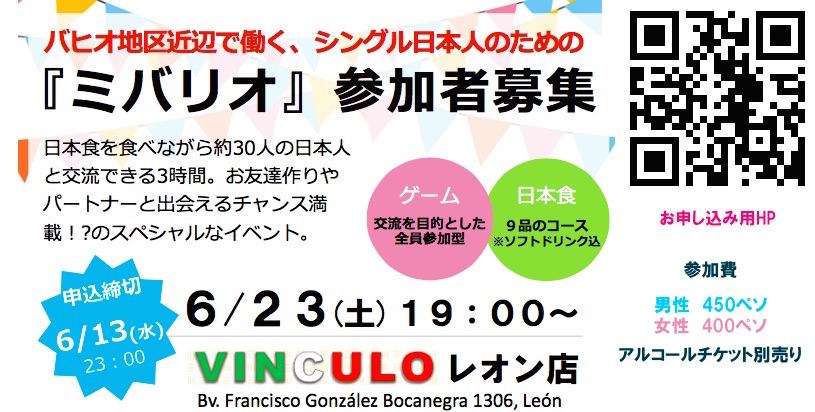 メキシコの生活いろいろ 2018/06/27 無いのなら、作ってみせよう、街コンを。@レオンの巻! 今のいまいまは車より大きなバイクよりカブに7割方心を持って行かれている、ニイナです。ほんと決まらん。さて。まだ2ヶ月も経ってない4月末のこと。Facebookで、初めての方からメッセージをいただきました。「グアテマラ時代にニイナさんのブログ読みました。今偶然同じレオンに住んでいることをやはり(この)ブログで知りました。ぜひお会いしませんか」的な。ストーカーかよ、と思ったのは嘘で(笑)ありがたいことにこのブログを読んでご連絡いただき実際に海外に行ったり海外転職の行動に移されている方々は何人かいらっしゃるのですが。まさかのFacebookで連絡までしてきた方は初めてだったので驚きつつもメールで返信し、その週末にお会いすることになりました。因みにこちらのブログはコメントも受け付けておらず過去にご連絡いただいた方々は皆様、拍手のシステムをご利用いただいてご連絡をいただいています。(そのシステムもよく知らんもんで、しょっちゅう何ヶ月も連絡を放置してしまう)そんな中Facebookで私を探してまでってストー(以下略/笑)で、実際にお会いしたらほんわか女子が現れたので楽しくおしゃべりしていたところ、なぜか解散する2、3時間後にはここ中央高原地区(バヒオ)で日本人だけの独身者の出会いのイベントをやろう!となっていたのでした。だってここに居て自分で動かなければ毎週、何にもしないで土日が終わるだけだもんねぇ。私が、そして多くの人が一緒に楽しめる何かをやりたかった。いろいろな人から話を聞いてると、そして私自身が独身でいてメキシコも日本も関係無く思うのは「ずっと一人がいいわけじゃない。いい出会いさえあれば」で、メキシコに絞って思うのは「ずっとメキシコにいるわけじゃない。きっかけさえあれば(日本に帰る)」ってよく聞くなぁ、ということ。てこのメキシコで日本人との出会いなんてないじゃーん!(別に人種や国籍は関係ないけど、こんだけメキシコ人居ていい!と思える人が少ないのも事実)この歳になると出会いなんて向うから転がってくるわけでも、王子様が空から降ってくるわけでもないことはわかっているので努力する方法としたら他に、インターネットで探す、ジムや何か別の趣味で知り合いを増やすなどなど方法はいくらでもあると思うのですが。私はどうやらそういう成果の見えない努力をしきらん性質で。。。(↑だからだめなんだって。)でもみんなで楽しめるお祭りをやるようなことは自分が楽しいからできるのです。昔、若い頃に自営業を立ち上げて輸入販売のお店を出したのですがそのときと同じ、ワクワクする感じ。私が楽しいから、でやり始めて、自分では出来ない部分は誰かにお願いして助けてもらう。そうやって数多くの方々の助けを借りて、たくさんのワクワクを体験させてもらったと思います。今回もそのほんわかな彼女が実は企画畑出身で。なんとも素早い動きで企画書やらチラシやら作ってくれたので、私はそれをネットなど形にしたり、少し出回らせただけなのですがおかげさまで開催する運びとなりました。 最初、イベントはバヒオ地区の真ん中、どこの主要な街からも2時間〜3時間で来れて、かつ街歩きも楽しめるグアナファトでザ・街コン!といった男女の出会いをメインの目的としたものを開催しようと計画を進めていました。しかし、それだけのイベントを請け負えるキャパ(場所的にも人的にも)を持ったお店がグアナファトには無く。知り合いを通じて、私もたまに利用させていただくレオンのお好み焼き屋さん、vinculo(びんくろう)さんにお願いすることとなりました。これが大正解で。料理は高くないのに美味しいし、広すぎないから人数もある程度管理がしやすい範囲で可能だし。店長さん以外メキシコ人のスタッフさんでしたが日本人の対応にとても慣れていらっしゃいます。何より我が家から近いのですぐ打ち合わせに行けるし(笑)何度かお伺いして、メニューにはない料理を考案して頂いたりしました。 見る影もないけど肉豆腐とか。vinculoの新たなメニューに登場するかも?!見た目にも可愛い野菜串も店長さんと考えました!私的にはかなりツボの絶品海藻サラダなどなど、お好み焼き含め全9品ものメニューでした!実際にチラシやホームページを準備してリリースしたのはイベント開催の3週間前くらい前。前金などをいただかない分、早めに人数だけは確定しなくてはいけないので、イベントの10日前を締め切りにして一週間前にはキャンセルなども含めて人数の確定を目指しました。実質2週間もないくらいで募集人数の30人も集まるものか本当に不安でしたが、なんとびっくり、口コミも含めてちょうど締め切り日当日には30人以上のお申し込みをいただきました。口コミやチラシにご協力いただいた皆様には本当に感謝しています。北の遠くはアグアスカリエンテス(レオンから2時間半く