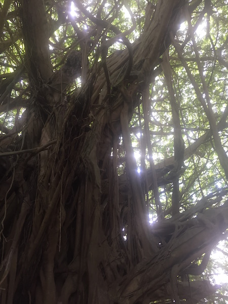 アメリカ旅行3 2018/01/12 初で一人でハワイ旅:海へ山へのハワイ島ドライブ・後編 この日のテーマソング 山下達郎 ”RIDE ON TIME” さて、実質ハワイの最終日、やっぱり朝ごはんはお宿でいただくスーパーで昨夜買ったアンパンと絶品コナコーヒーです。いやほんと美味しいわ。とりあえず綺麗な自然の景色に出会えれば、と思いまずはワイピオ渓谷を目指して今日はのどかな内陸道の19号線をドライブ。してたら寄り道ばかりでなかなか到着しないのですが。寄り道その一、曲がり角にある看板が気になってふらりと入ったパーカー牧場でやっているファーマーズマーケット。巨大なパーカー牧場。 ふらりと行ってみたら地元の方々で大盛況。フルーツから加工した食品からアクセからいろいろ売っています。売り子のおばあちゃんご自身が「私の手作りよ」と言う素敵なエプロンをゲット! コナコーヒーも売っていたのですが、今日一日回っていたらまだ売っているところはいくらでもあるでしょ!と見送りました。だってまだ寄り道一軒目だもんねぇ。寄り道その二。でっかいアンパン2個も朝食べてきたくせに、ハワイ初のマラサダ店ということでついつい入ってしまったドライブイン、Tex Drive In.マラサダっていうのはどうやら揚げドーナツみたいなハワイ名物らしい。はい、コーヒーとともに〜。 ドライブイン、なだけあって駐車場が広いのですが、いろいろ植物も植えてあったり。 その駐車場からは先に広がる海の水平線が霞んで見えます。Tex Inを出て15分ほどでやっとこさワイピオ渓谷へ。 うわぉ!なんだかとっても叫びたい!!この海の青さはハワイの中でもまた初めて見た色でした。渓谷の中をハイキングや馬とか馬車でツアーでめぐることもできますがそれで一日終わりそうなので、今日は上から見るのみ。 渓谷の中にはタロイモ畑も広がっているそうな。さて。今日の次の目的地はオールドタウンのヒロ。お宿を出て島の北のほうへ来て、今度は東側の海沿いを下ります。最終的にはビッグアイランドと言われるハワイ島を北回りでくるっと回るドライブです。と言いつつもやっぱり道の途中にある街並みや看板が気になって寄り道ばかりなのですが。寄り道その三。ホノカアの町。さっき渓谷に行くときに走りながら気になったのです。 可愛らしい雑貨店などが並ぶ小さなオールドタウンで、建物の名前に日本人の苗字がついていたりするもの見ていて面白い。 手芸品店でハワイアンな柄の可愛らしい布の端切れをゲット!最近、ハンドメイド熱が上がっているらしい姉へのお土産にしよう。寄り道その四。ラウパホエホエ・ビーチ・パーク。 ビーチ・パークと言っても遊べるビーチじゃなくて景色が綺麗なポイントですが、近隣には車も停められるしキャンプとかもできるんじゃないのかなぁ。昔、津波で多くの人が亡くなった場所らしく、多くの日本の苗字の名前とまだ若い年齢が刻まれた慰霊碑が海を見渡せる場所にありました。寄り道その五。ペペエケオのオーガニックっぽいフルーツのお店。こりゃまた真っ直ぐ道をシュッと行けばいいのに、海に近いくねくね道を選ぶけん、またまたヒロタウンに着くのが遅くなる、、、とやっちゃったなぁ、と思い始めたところにポツンとありました。もうお昼時も過ぎて、ちょっと小腹が空いてきたところだったので、とハワイに来てスムージーやらかき氷やらのひとつも食べてないのはどうなんだ、と思って、なんだか健康的なグリーンスムージーをお買い上げ。サンドイッチなんかも出しているみたいで、お店の前に置いてあるテーブルでいただくこともできるみたいです。 ランブータンは無料で試食できます。寄り道その六。ヒロタウンのレインボーフォールズ。 こんな看板見たら行かないわけにいかないのですが、、、完全に騙された(笑)虹はうっすら見えないこともないのですが、その名前ほどでもなく。まぁ、南米のイグアスの滝を歩いたときに、もうしばらくこれ以上の滝と虹のコラボを見ることはないだろうなと思っていたので感動が大きくないことはわかってはいたのですが(笑)後で、地図代わりに持って行ったガイド本に載っているのを見つけたのですがやはり名前のほう実際より強烈らしい。ただ、滝の近くの森林浴が気持ちよかったので、ま、いっか。 気持ちの良い場所。すぐ近くは普通に住宅街っぽいんですけどね。 枝が右と左の樹で繋がっていてもはやどっちの枝なのかわかりません。やっとこさヒロタウンに来たのですが、、、もう午後15時を回っています。街並みを見る時間は無さげなので、とりあえずお目当のごはんスイサン・フィッシュ・マーケットでポケをゲット! ポケってハワイに来て知ったけど、どうやら醤油で味付けした海鮮丼らしい。メキシコに居ると、しかも内陸部に住んでいるのでなかなか新鮮な魚は食べれない!ってことでお買い上げ!お店の外にあるベンチでいただきます。ザ・生魚!ですが新鮮だから生臭くない。私が